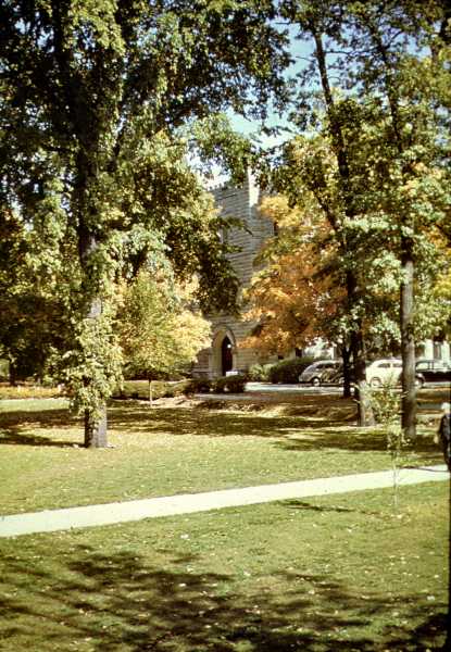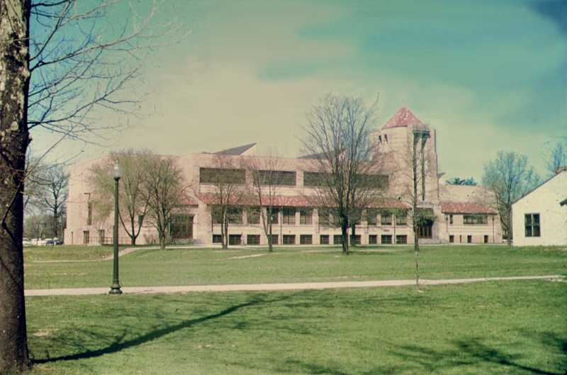 McAfee Gym was built in 1938. There's the cottonwood tree. Right there, of course it's many years older. So when McAfee gym was built... originally it was Lantz Gym... the man in Springfield said, "There's nothing on that part of the campus, we'll set McAfee Gym there." So all we had to do was drain Lake Ahmoweenah and set the gymnasium in it and we now have this cottonwood tree right there. So there has been quite a bit of change in scenery.