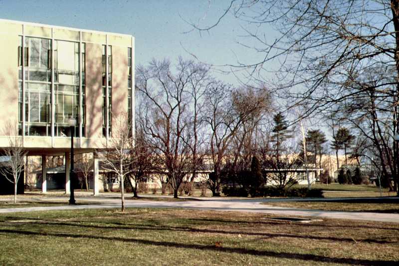 Another view looking north from the Life Sciences Building. See? See how it grew? This little water tower was, of course, after a few years eliminated and we just have the big water tower instead of the little one. But it's the same picture and that's the sort of thing that happens.