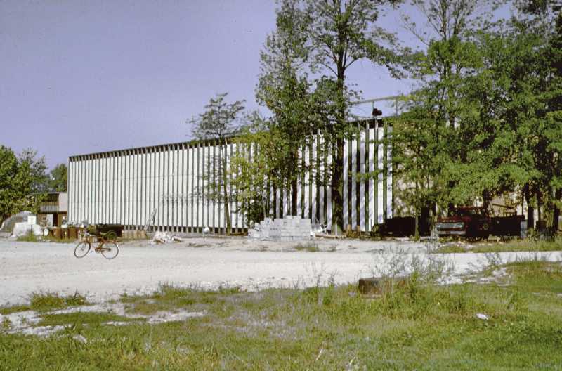 Lantz Gym from the southeast in September, 1973. This is the east end of Lantz Gym. Inside it would be the basketball court. I don't dare call it the Cracker Box.