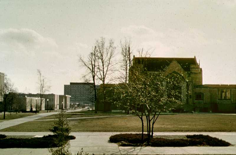 The Life Science Building in September, 1962. I hope you recognize this, there were a couple of ashes in this, I don't know if I can point out an ash, although along Seventh Street there are some pine. There are some honey locusts in here somewhere.