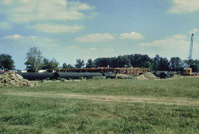 Men's dorms under construction on August 1, 1962. Now, here is the building of Thomas dormitories.