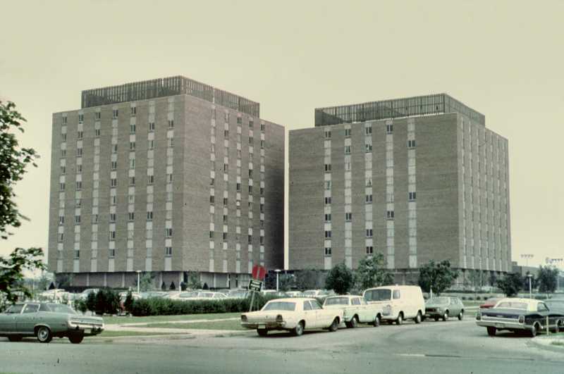Stevenson Hall on September 1, 1968. And here is Stevenson Towers, Lincoln and Douglas and the parking lot and if you turn around you'll all know what it looks like.