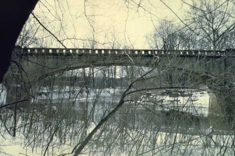 Old bridge near dam at Lake Charleston on March 12, 1960. If you went to Greenup you went south on 130 and you crossed the river on this bridge. But they thought we ought to have a little better bridge.