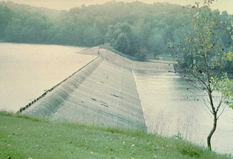 The dam in September, 1973. This is the spillway, as I said before, it raised the water of Lake Charleston 13 feet. Now, if they put in a new lake, they want to raise the water 20 feet as maximum, 4 feet as minimum above this lake. Whether we'll ever get it or not, I don't know. But, enough water has spilled over the dam and I've shown you the 80th slide, so we are through.