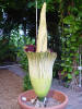 I have been monitoring the status of a couple of potential flowering Titan Arums in the Midwest. One grew to a height of three feet before poking the head of its leaf out of the top on Sunday. We were hoping that it might be an inflorescence because it had been seven years since it flowered for the first time. Nope. The second one hasn't developed enough to determine whether it will be an inflorescence or not. Its a sibling of my Titan Arum. We are hoping that seven is a lucky number and it will bloom this year. We should know for sure within a couple of weeks. I'll let you know one way or the other if it is going to flower as soon as I find out.